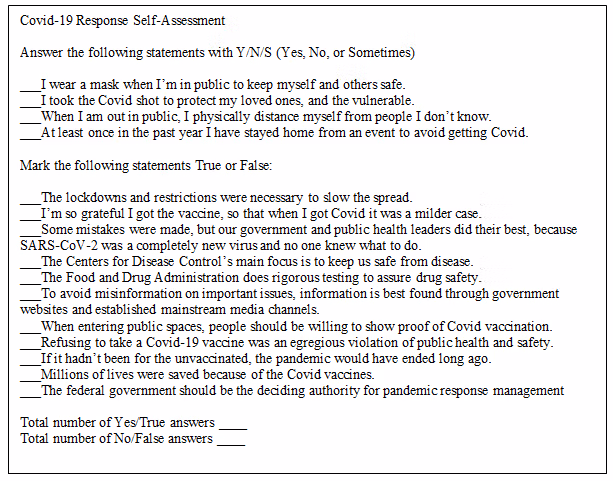 Például azokat az ijesztő esetszámokat/halálozási/kórházi kezelési számokat, amelyek mindig előttünk voltak, soha nem helyezték perspektívába a múltbeli betegségekkel vagy a normális halálozási aránnyal. Azt mondták nekünk, hogy az esetszámok azért nőnek, mert nem tartjuk be az egészségügyi irányelveket. Azt mondták nekünk, hogy bármelyikünk, bármikor lehet a fertőző ágens, amely megölheti szeretteinket, sőt idegeneket is. Volt maszkszégyen. Azt mondták nekünk, hogy önző dolog a családdal és a barátokkal összegyűlni; hogy önző dolog dolgozni és iskolába járni.