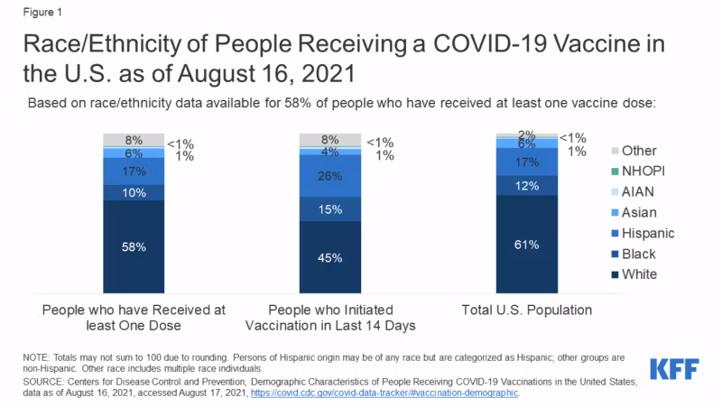 A témával kapcsolatos vitában valahogy elveszett az oltási státusz tekintetében fennálló hatalmas faji különbség. A CDC összeállítja az oltási státuszt rassz szerint, és megállapította, hogy azok között, akik legalább egy adag vakcinát kaptak, közel kétharmaduk fehér (58%), 10% fekete, 17% spanyol, 6% ázsiai, 1% amerikai indián vagy alaszkai őslakos volt. Mit jelent ez New York államban, például, hogy az afroamerikaiak 86.4%-a, az ázsiaiak 85.2%-a és a spanyol ajkúak 80%-a nem vehet részt a közéletben.