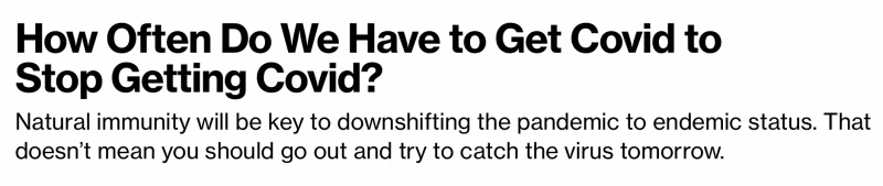 És itt vagyunk, ennyi idő után, és a főcímek végre elismerik azt, aminek már a kezdetektől fogva nyilvánvalónak kellett volna lennie. Egy ilyen elterjedt vírus széles körű természetes immunitással végződik. Íme a Bloomberg főcím: