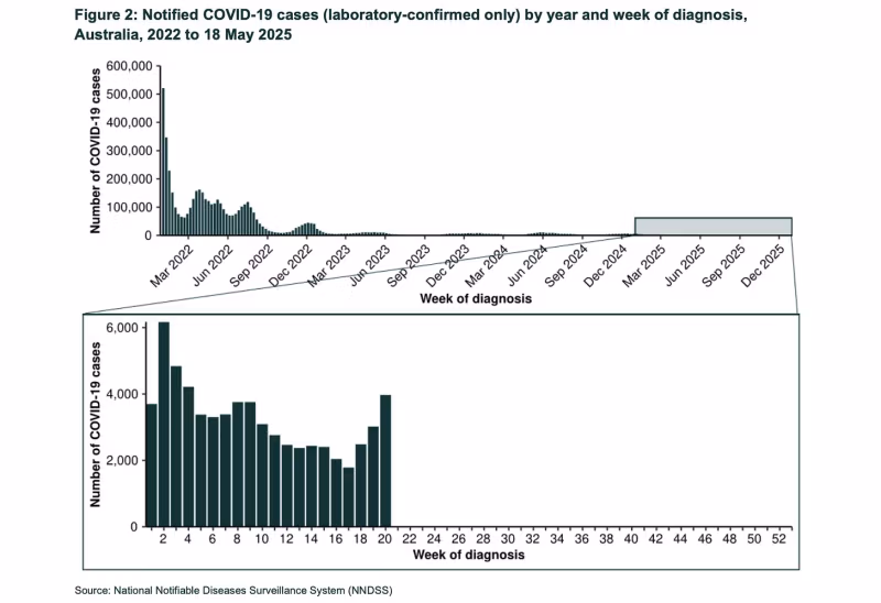Forrás: Ausztrál Légzőszervi Felügyeleti Jelentés – 5. május 18. – május 2025..