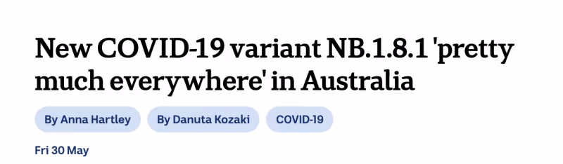 Kiállítás: „A Griffith Egyetem szerint az NB.1.8.1 variáns a Victoriában tesztelt összes COVID-eset több mint 40 százalékát, Nyugat-Ausztráliában és Új-Dél-Walesben körülbelül 25 százalékát, Queenslandben körülbelül 20 százalékát és Dél-Ausztráliában kevesebb mint 10 százalékát teszi ki.” az ABC tudósításai.
