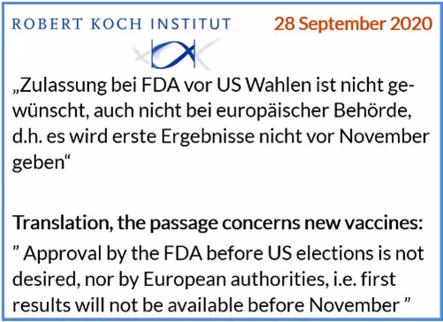 Ahogy Dr. Homburg összefoglalja: „Ismeretlen politikai erők Bident támogatták, és arra utasították az amerikai, valamint az európai hatóságokat, hogy akadályozzák a Covid-vakcinák – a hatóságok szerint életeket mentő termékek – sürgősségi jóváhagyását az amerikai választásokig.