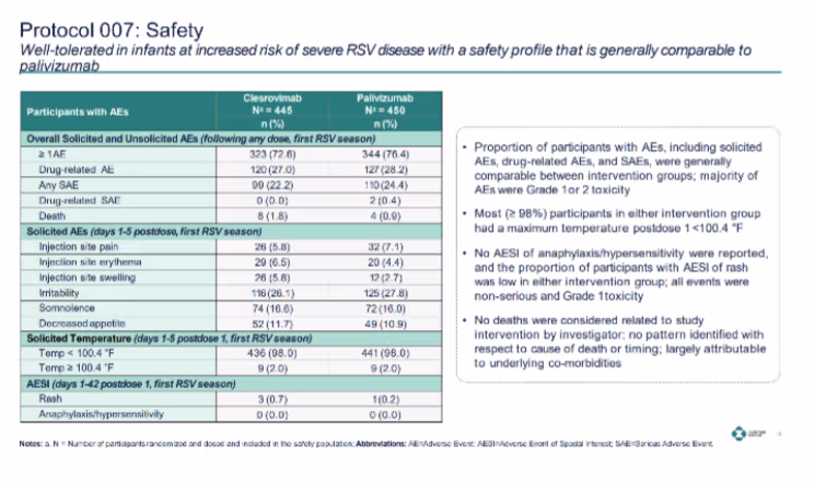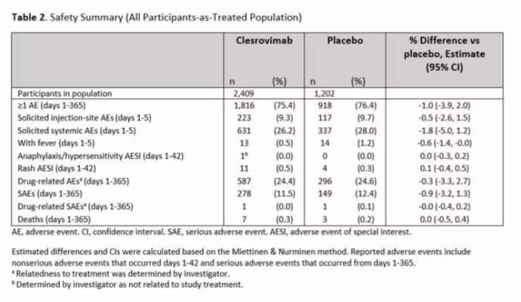 Az FDA 2025 kockázatfelmérés A kleszrovimab – az ACIP által vizsgált termék – esetében a két fő vizsgálatban hasonló tendencia mutatkozott:
