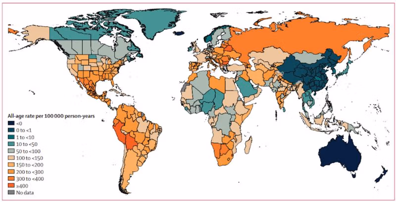 Mindezek alapján hogyan kellene összehasonlítanunk az országok járványkezelését? Bár nem tökéletes, a legjobb módszer a többlethalálozás összehasonlítása; azaz a járvány alatt megfigyelt halálesetek teljes száma mínusz a járvány előtti években megfigyelt átlagos halálesetek száma. Mivel a járvány még nem ért véget, még nem áll rendelkezésünkre a teljes kép. Mindazonáltal egy legutolsó cikk a Gerelya 2020-2021-es többlethalálozásokat mutatja be a világ szinte minden országában. Az alábbi térkép az eredményeket mutatja: