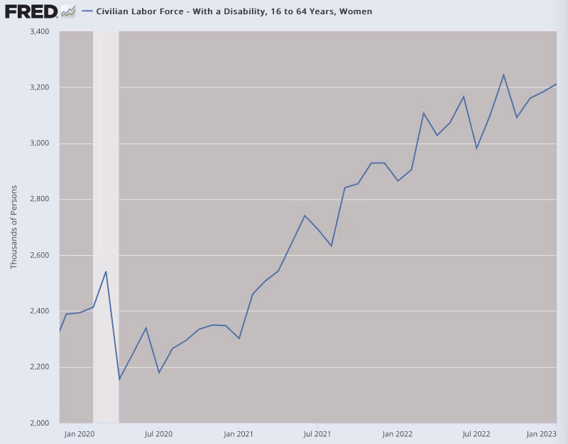 Eközben drámaian megnőtt a fogyatékkal élő, foglalkoztatott nők száma.